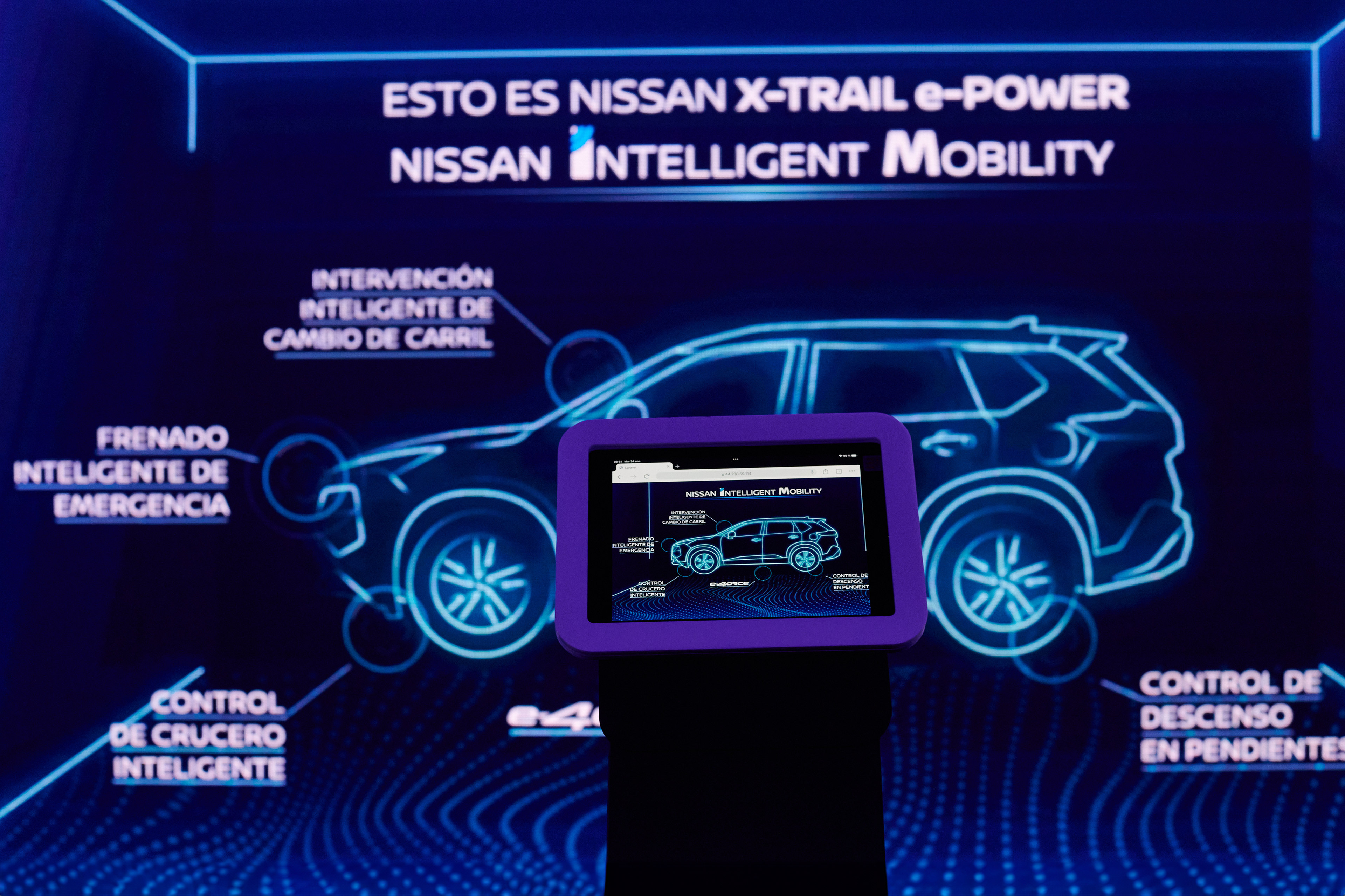 Previo al momento develación, distintas instalaciones invitaban a conocer detalles de la nueva propuesta de la marca. La estación NIM Activity permitía tocar en las diferentes partes de la X-TRAIL E-POWER, en su versión digital, y desplegar el spect correspondiente a Nissan Intelligent Mobility.