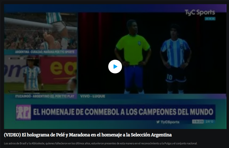 Aprovechando entonces el uso de la tecnología deepfake y holográfica, logramos Diego Armando Maradona y Pelé también digan "presente!" y puedan dedicarles unas palabras a nuestro 10.